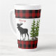 Cette tasse de latte de style rustique présente un design unique d'une silhouette d'élan sur un fond à carreaux rouge et noir de buffle. J'ai ajouté un sur-ombrage d'arbres de sapin pour donner à cette tasse un look hivernal boisé. Cette tasse de latte serait un cadeau de Noël attentionné