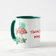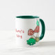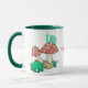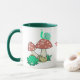 Tasse colorée d'illustration de bande dessinée d'enfants, avec deux ou trois champignons rouges amortis, avec un escargot de grenouille verte et de sarcelle d'hiver. Personnalisez avec le nom de votre enfant pour un cadeau spécial que n'importe quel enfant aimerait.