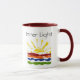 Une tasse de lumière intérieure de quaker avec un lever de soleil d'aquarelle au-dessus d'un océan d'aquarelle. Vous pouvez customiser ces tasses n'importe quelle manière que vous voulez. Mettez même votre propre citation préférée de quaker là-dessus.