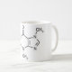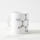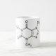 Tasse avec la molécule de caféine imprimée là-dessus.