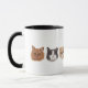 Une tasse comportant des portraits des chats de l'endroit de six chats tigrés.