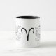 Cette tasse d'astrologie de zodiaque de signe du soleil de Bélier a des nuages de mot dans les polices mélangées des traits de Bélier de deux côtés avec le symbole d'astrologie pour le Bélier au centre. C'est un cadeau parfait pour n'importe quel Bélier.