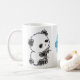 Croquis mignon d'une paire de bébés pelucheux de panda. Une étiquette indiquant le "xoxo, panda" est accrochée entre les pandas. Customisez la tasse avec des couleurs et des textes de fav d'ur.