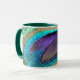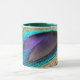 Cette belle tasse est ornée par une image d'une plume de paon.