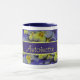 Cette tasse comporte une pleine image enveloppante de belles fleurs bleues et jaunes, aka de "alto de pensée de saut de type "" tricolores". Sensible et gai n'importe ce que vous les appelez. Cette tasse inclut un espace pour votre nom.