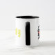 Drapeau Fraidy des bleus oranges de chat sur une tasse de café de sonnerie. Choisissez de six couleurs et de deux tailles. Placement d'image conçu pour les buveurs droitiers de café.