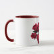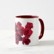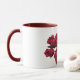 Cette tasse comporte un bouquet magnifique des roses rouges.