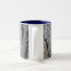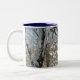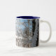 Cette tasse montre une scène d'hiver avec les branches d'arbre neige-couvertes traversantes évidentes de bâtiment.