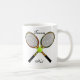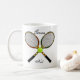 Les raquettes de tennis composent cette tasse d'amusement. Personnalisable ainsi vous pouvez ajouter votre propre texte et changer la couleur d'arrière - plan. Fait un grand cadeau !