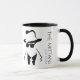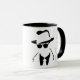 Tasse de café blanc, poignée noire avec le logo de TheMittani.com et type d'espion.