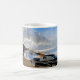 Une tasse avec une image d'un train en hiver. Ou est-ce été ?