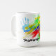 La tasse avec la main imprime pour le concept du travail d'équipe et de la coopération