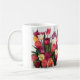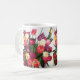 Une tasse lumineuse et belle pour votre café ou thé ; rempli de tulipes pour s'ajouter à votre acclamation de matin. Les tulipes rouges, roses, jaunes et pourpres ornent cette tasse par l'artiste Claire M Carlson.
