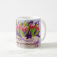Commencez votre jour avec la vibration des tulipes rouges. Comment est-ce que quelque chose peut aller mal ? Les enrouler de conception autour de la tasse. Les tulipes rouges vibrantes dans un panier blanc ont garni de la toile. Un match parfait à la carte de note pour cela spécial quelqu'un.