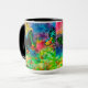 Ma couleur d'eau originale a imprimé sur une tasse potable comportant l'ensemble d'arbuste d'Omphalea à un arrière-plan brillant de coucher du soleil visité par les mites de coucher du soleil (Chrysiridia Rhipheus), qui sont indigènes au Madagascar, Afrique.