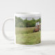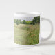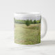 Une photo d'un vieux tracteur dans un domaine en France rurale, coupant le foin, sur la tasse enorme classée d'un agriculteur. Photographie par ruralfrance.