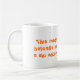 Tasse fraîche pour un intoxiqué de ski. D'un côté une image dynamique et pourpre d'un skieur expert, sur l'autre texte orange de côté disant "cette tasse appartient à un intoxiqué de ski"