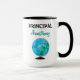 Tasse de Cofee personnalisée par globe de directeur d'aquarelle. Globe bleu et vert d'une aquarelle du monde pour le chef d'établissement mondain. Personnalisé avec le nom de chefs d'établissement en manuscrit vert. La conception est des deux côtés de la tasse. Un pratique et un amusement ont personnalisé le cadeau pour un collège élémentaire et ou un chef d'établissement de lycée. www.SamAnnDesigns.com