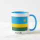 Le drapeau du Rwanda a été adopté le 25 octobre 2001. Le drapeau a quatre couleurs : bleu, vert, et deux formes de jaune (jaune standard pour la bande moyenne et ce qui les appels système de Pantone "exposent au soleil le jaune" pour le soleil). La bande bleue représente le bonheur et la paix, la bande jaune symbolise le développement économique, et la bande verte symbolise l'espoir de la prospérité. Le soleil représente l'éclaircissement. [2] Le nouveau drapeau représente l'unité nationale, le respect pour le travail, le héroisme, et la confiance à l'avenir. Il a été adopté pour éviter des connotations au génocide 1994.