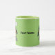 Ajoutez votre nom au modèle pour personnaliser. Ou ajoutez votre propre texte, ou supprimez-le. Vous en pouvez changer la couleur d'arrière - plan en que vous aimez, ou la supprimez. En ce moment c'est un arrière - plan vert pour assortir la tasse verte de sonnerie, mais il y a d'autres couleurs disponibles.