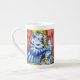 Bone China Mug mettant en vedette la peinture animale de Louis Wain Cat and Her Kittens (1860-1939). Une chatte-mère bleue anthropomorphisée tient un de ses chatons bleus. Deux chatons supplémentaires dorment dans un panier. Un cadeau merveilleux pour l'art amoureux des chats et anglais.