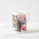 L'image présente une illustration magnifiquement détaillée d'un jeune léopard entouré d'un ensemble de fleurs vibrantes et florissantes. Le léopard, avec sa fourrure tachetée et ses yeux expressifs distinctifs, est placé en évidence dans le centre, créant un point focal frappant. Les fleurs environnantes, principalement dans les tons rose et violet, apportent une touche douce et capricieuse à la composition. L'arrière - plan présente des éclaboussures d'or et de couleurs pastel, ce qui renforce l'atmosphère rêveuse et artistique de l'image. Ce mélange captivant d'éléments fauniques et floraux rend l'image à la fois visuellement attrayante et unique, parfaite pour des produits qui ont pour but d'évoquer un sens de l'élégance et de la beauté naturelle.