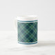 Tasse de porcelaine osseuse avec l'ancien motif tartan de la famille Keith. Plaid traditionnel écossais vintage de 1838 en bleu clair et vert, aux accents noirs.
