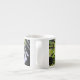 Espresso on the lanai - la photo originale de MaeFlowers sur cette Coupe Espresso est une étude de la lumière et de l'ombre sur les feuilles tropicaux au soleil de l'après-midi. Un bout de ciel bleu clair surplombe les grands feuilles verts, qui ressemblent à d'énormes fans tropicaux. La photo entoure la tasse de chaque côté de la poignée.