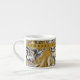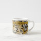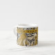 Le mot "namaste" est écrit sur cette tasse expresso en lettres noires trois fois dans une orientation horizontale. Le design a un look amusant qui s'inspire des marques d'un grand chat jungle.