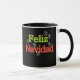 Le texte rouge et vert avec des flocons de neige blancs dit "Feliz Navidad" sur les cartes de voeux, les tasses, les sacs fourre-tout, les boutons, les T-shirts, et bien plus encore.