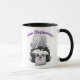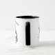 Tasse blanche avec la jante noire comportant nos nouveaux débuts, logos heureux de fins !