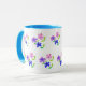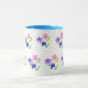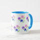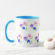 Tasse Floral moderne, rose, bleu, mauve, vert sur blanc