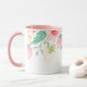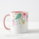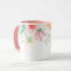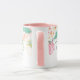Cette tasse florale présente de jolies images pastel de fleurs autour du bord supérieur de la tasse. L'intérieur de l'échantillon présenté est rose.