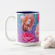 Ces deux chics et magnifiques modifient la tonalité la tasse comportant une sarcelle d'hiver d'aqua d'éblouissement, bleu et l'arrière - plan rose de parties scintillantes d'ombre avec les roses roses magnifiques en pleine floraison ajoute une certaine étincelle à vos pauses-café, heure du déjeuner et collection de vaisselle. Perfectionnez pour les amants floraux et roses, les amants de parties scintillantes, les fans d'art et ceux qui aiment le style. Chaque ordre est fait sur commande juste pour vous !