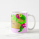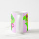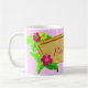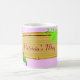 Une tasse avec la ketmie hawaïenne rose et jaune fleurit sur un arrière - plan de rose en pastel fait dans une conception illustrative. Le secteur de modèle est pour n'importe quel texte que vous choisissez, nous juste a mis Patricia là comme exemple. Cette tasse est si lumineux et coloré elle vous continuera à sourire toute la journée. La couleur d'arrière - plan peut être changée, il regarde également vraiment bonne sur un arrière - plan jaune pâle.