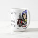 Cette tasse folle pour des fans des aventures d'Alice au pays des merveilles par Lewis Carroll comporte deux des illustrations célèbres de John Tenniel du chapelier fou. D'un côté de la tasse il s'assied au thé avec le loir somnolent par son côté. Le chapelier fou porte son casquette supérieur, haute chemise étranglée et grande cravatte d'arc avec le motif de point de polka pendant qu'il ondule sa main dans le ciel et parle beaucoup d'air chaud et envoie le petit loir au sommeil. Sur la table de thé devant le couple sont deux tasses et soucoupes et un plat vide. De l'autre côté de la tasse est une autre illustration du chapelier fou, cette fois où il a mordu un gros morceau hors de son sandwich et de la tasse de thé. Dans les deux illustrations j'ai ajouté une peu de couleur à la scène. Au centre de la tasse sont les mots, nous sont tous fous ici. Vous pouvez changer le texte en costume en utilisant le bouton de personnaliser.
