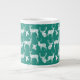 Une tasse lumineuse et amusante pour l'hiver pour tous vos chocolats chauds d'hiver, café, même soupe ou chili! Cette tasse de spécialité jumbo présente un cerf blanc silhouette rustique, à la fois des dollars et fait, sur un arrière - plan de turquoise!