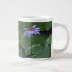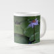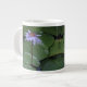 L'oeuvre de cette Mug Géante est une photo originale de MaeFlowers d'un nénuphar, une fleur qui fleurit au milieu des coussinets flottant sur l'eau. La fleur est d'une belle couleur bleu lavande, se détachant du vert foncé, des lilypads ronds.