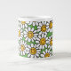 Un joli motif hippie de fleurs de marguerites blanches et jaunes avec des visages sur un arrière - plan vert.