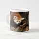 Une photo d'un petit panda rouge adorable regardant vers le bas d'où il s'assied sur des branches d'arbre prises au zoo. Copyright 2010.