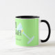 Cette tasse est idéale pour toute personne qui aime boire du gin. Il a un arrière - plan vert vif avec les mots, en noir, "Gin est la réponse. Quelle était votre question ?" La tasse est décorée de deux verres de gin et de tonique avec de la glace et du citron.