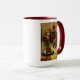 15 onces. tasse avec des images de chat blanc/gris/noir sur son coussin et sur le placard regardant vers le bas. La deuxième image a une légende "que je vous vois".