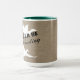 Tasse drôle de bureau pour ces chasseurs de canard là ! Les silhouettes blanches de canard au-dessus d'un arrière - plan brun de toile de jute conçoivent et le texte "je serais plutôt chasse de canard" en texte noir.