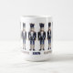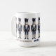 Voici une tasse de fête avec une rangée de casse-noisettes élégants, habillés de bleu et d'argent.