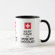 Drôle gardez le calme et buvez la tasse de chocolat chaud avec le drapeau suisse.