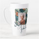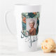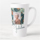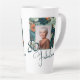 Elégant 80 et Fabulous Flower Motif Anniversaire Photo Latte Mug. 80 et texte fabuleux en script tendance et un motif de fleurs élégant et beau. Personnalisez-le avec votre nom et votre photo, et faites-lui une tasse de latte d'anniversaire fleurie personnalisée et élégante.