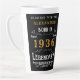 For those born in 1936 and celebrating their 90th birthday we have the ideal birthday latte mug. The black background with a white and gold vintage typography design design is simple and yet elegant with a retro feel. Easily customize the text of this birthday gift using the template provided. More gifts and party supplies available with the "Legendary" design in the store.