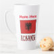 Une grande tasse en latte personnalisée montre le drapeau albanais avec le mot ALBANIA écrit ci-dessous, dans les couleurs rouge et noir du drapeau. Ajoutez votre nom, en lettres rouges, dans l'espace prévu pour un look personnel. Ou, créez un cadeau en ajoutant le nom de quelqu'un d'autre. Beau cadeau de ménage. Amusants à utiliser lors d'événements club ou de groupes de voyage et de réunions d'amis ou de famille.