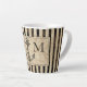 Cette tasse en latte personnalisée à thème nautique présente un arrière - plan rayé noir et beige avec une ancre noire au centre et une superposition de carte du monde. Personnalisez le monogramme avec vos propres initiales. Conçu par un artiste mondialement connu ©Tim Coffey.