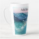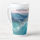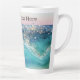 Tasse Latte Aquarelle Bleu Blanc Océan Vague Personnalisée Nom